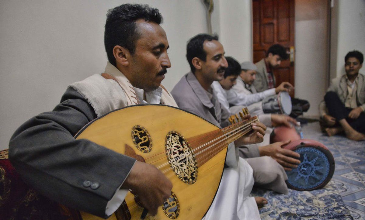 Yngve Bergesen Anda viser frem en kassegitar og en oud.